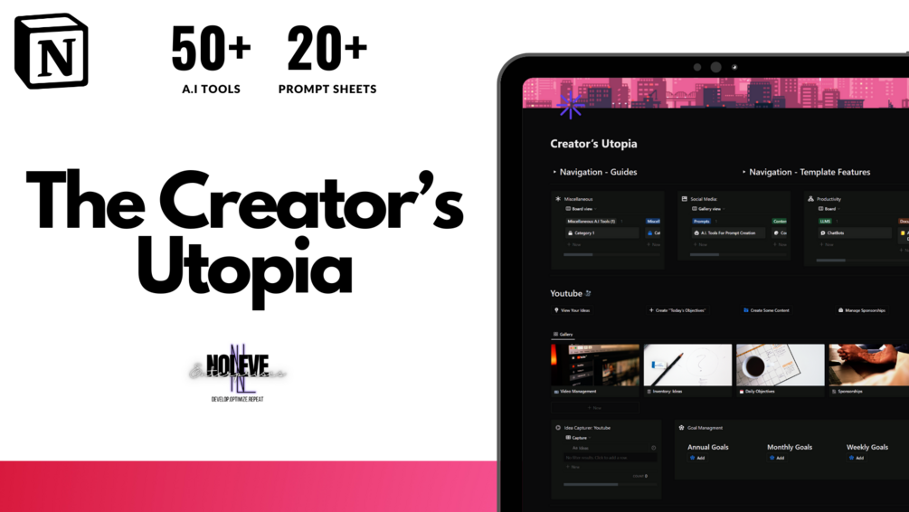 Endowed With 50+ A.I. Tools And 20+ Prompt Sheets, The Creator's Utopia, is the most elegant as well as the most effective notion OS anyone can possibly possess.